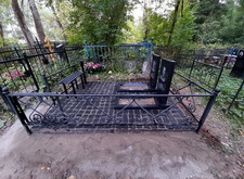 В данном заказе нам предстояло полностью благоустроить место захоронения. Клиент пожелал заменить на участке всё, кроме ограждения. Нам предстояло изготовить два классических гранитных памятника с прямоугольными цветниками, а также выложить территорию могилы брусчаткой. Первым делом мы приехали на кладбище и оценили исходное состояние места захоронения: оно поросло сорняком, а потому выглядело заброшенным.